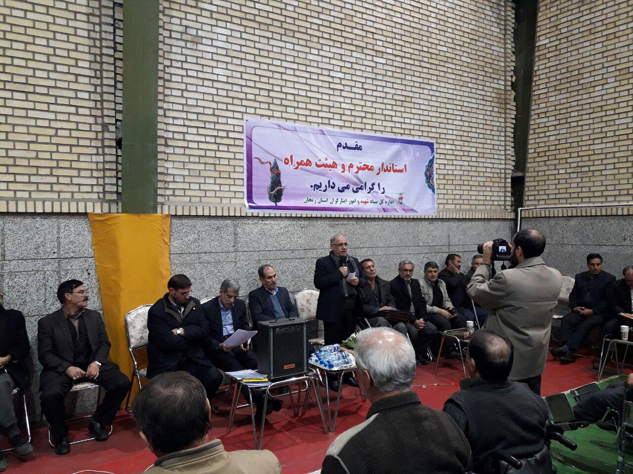 در این نشست صمیمی ابتدا آقای کاظمی مدیر بنیاد شهید استان ، ضمن خوش آمدگویی گزارشی از روند خدمات دهی به جانبازان و همچنین آماری از تعداد جانبازان ۷۰درصد و قطع نخاعی و وضعیت آنها ارائه دادند . کاظمی در ادامه اشاره ای به وضعیت موسسه ایثار زنجان کرد و گفت این موسسه دارای استخر ، زمین چمن و سالن چندمنظوره ورزشی است که در حال فعالیت هستند و همچنین قسمتهای دیگر موسسه با پیشرفت ۶۰%درصدی متاسفانه چند سالی است که راکد مانده است .