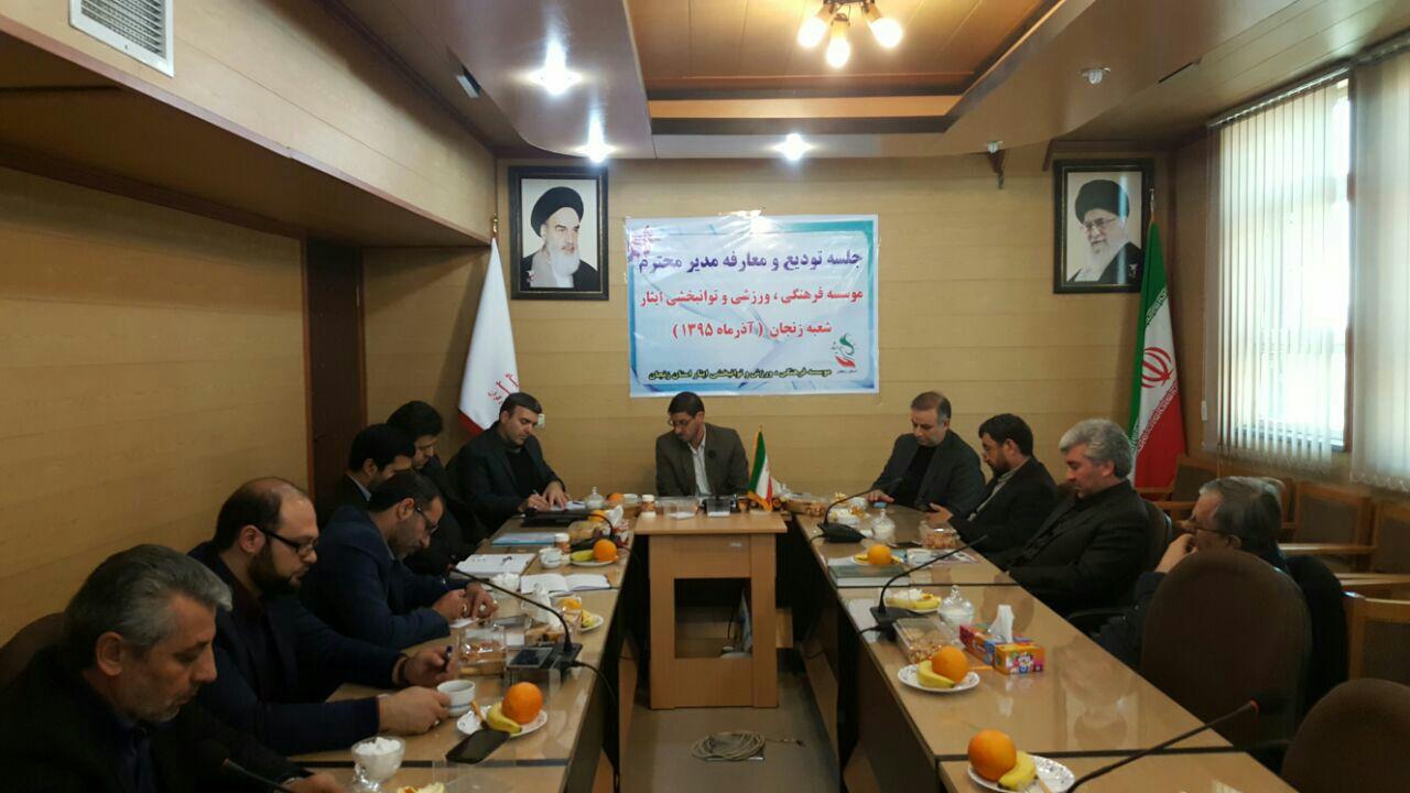 طی مراسمی که روز یکشنبه مورخ ۲۱/۹/۹۵ با حضور آقای محمد بیدقیان قائم مقام موسسه فرهنگی ورزشی و توانبخشی ایثار و آقای علی کاظمی مدیر بنیاد شهید و امور ایثارگران استان زنجان به همراه اعضای محترم شورای استانی در محل بنیاد شهید استان برگزار شد ، هدایت و سرپرستی موسسه فرهنگی ورزشی و توانبخشی شعبه زنجان به آقای عباس برزگر سپرده شد .